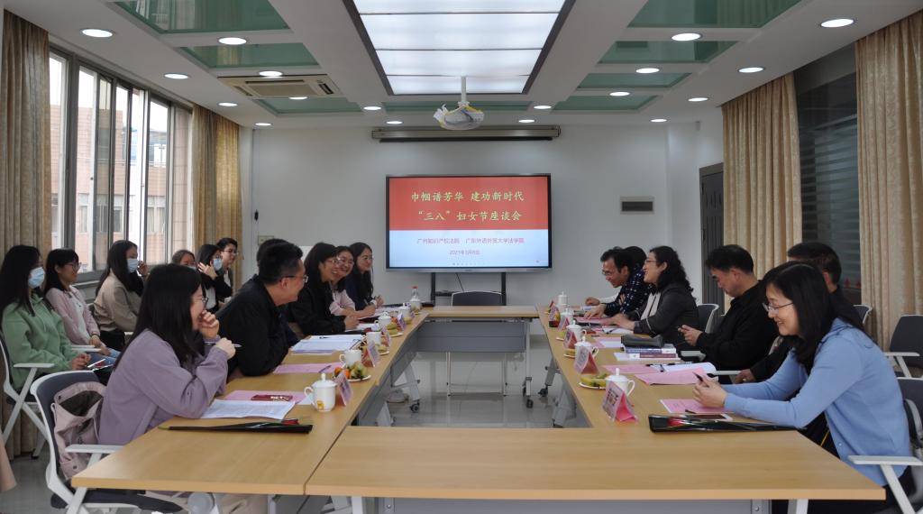 3月8日妇女节,广州知识产权法院专利审判庭庭长郑志柱率女法官、法官助理、实习生代表一行18人来访我院,与我院举行以“巾帼谱芳华 建功新时代”为主题的妇女节座谈会。华南国际知识产权研究院院长陈云良、华南国际知识产权研究院副院长常廷彬、法学院韩永红副院长、杨桦副院长、黄丽萍教授、王太平教授参与座谈。